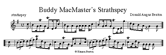 A popular tune, recorded on The Beaton of Mabou, (Rounder LP, 1979) this strathspey has been previously published by composer' son, Kinnon, in The Beaton Collection. During Buddy MacMaster's lifetime (1924 -2014) many tunes were composed for him.