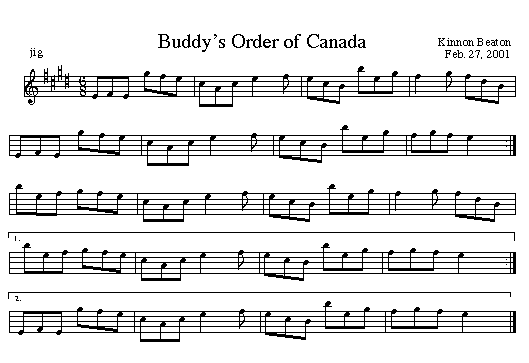 A popular jig, the notation above published in Kinnon Beaton 100 Tunes and recorded on his CD Eoghan Dubh.During Buddy MacMaster's lifetime he received many honours and of course many tunes were composed for him too.