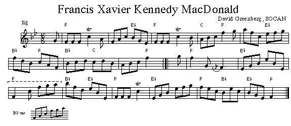 One of David's most poplular tunes it has been recorded many times including most recently on David's CD, Tunes until Dawn and Jerry Holland's solo CD Crystal Clear. Brenda Stubbert recorded it on In Jig Time. The notation is excerpted from Jerry Holland: The Second Collection
