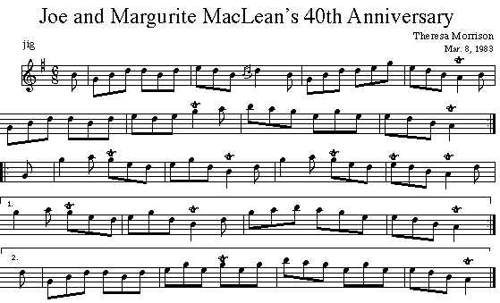 All in the family, thls lovely jig was written by Michael Anthony MacLean's sister, fiddler Theresa Morrison for their brother and sister-in-law.