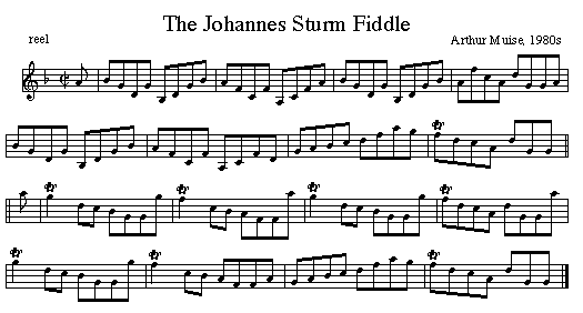 Composed a number of years back when Arthur bought a fiddle from violin craftsman Johannes Sturm of Louisdale. Arthur made a number of Gminor reels including one from Joe Cormier's nephew JP Cormier. Other Examples of Music Notation