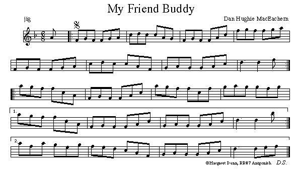 Notation above first published in MacEacherns Collection, 1975 (currrently out of print). Written for Buddy MacMaster, during his lifetime (1924 -2014) many tunes were composed for him.