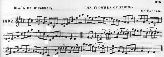 This music above is a scan of a page from O'Neill's Music of Ireland, a transcription from Mayo fiddler John McFadden. It was recording by James Morrison in 1935 and by Dan J. Campbell in 1936. Other Examples of Music Notation Cranford Pub Search Engine