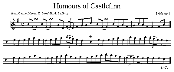 First recorded in the 30s as The Humours of Castlefinn, by both Paddy Killoran and by Frank O'Higgin, in 1959 Paddy Canny, P.J. Hayes, Peadar O'Loughlin, Bridie Lafferty recorded this fine reel as Egan's. That early LP first titled "All-Ireland Champions" has been re-issued as An Historic Recording of Irish Music.![]()