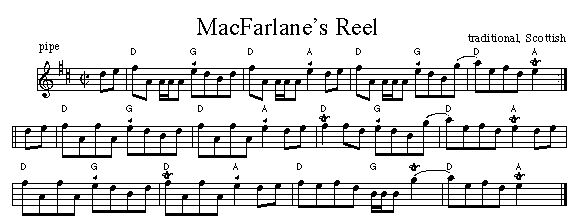 Popularized by piper Donald MacLeods mid 20th century book this reel was recorded recently by Dr. Angus MacDonald on Maiden Dubh' an Donais (CD, 2009).i. McGlashan Vol. 3 1786