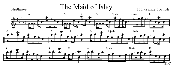 Above setting comes from Brenda Stubbert - The 2nd Collection.A popular 18th century Scottish reel, it has also been published in the key of F. It can be heard played by Rodney MacDonald on the Highland Legacy DVD. It can also be heard on recordings by Kinnon Beaton, Teresa Morrison, David Greenberg, Donald Angus Beaton plus many others.