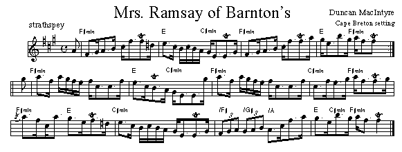 In the first edition of The Cape Breton Scottish Collection I didn't include the D# notes or the final quadruplet. This revised setting still attempts to reflect some of Joe Cormiers nuances while staying close to the composer's original. i. Duncan MacIntrye Collection, 1795. ii. Kerrs Vol. 1, (circa 1875). iii. Athole Collection, 1884 (in E minor). iv. Joe Cormier, Informal Sesssions, CD, 1998.