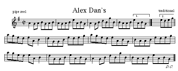 Alex Dan MacIsaac was a fiddler originally from Dunvegan, Inverness Co. He passed many tradtiitonal sons on to his son Dave MacIsaac who has passed his knowlegde on freely to all of his friends. Paul MacNeil learned the above tune from Dave and adapted it the pipes on his new recording CastleBayMusic.com.