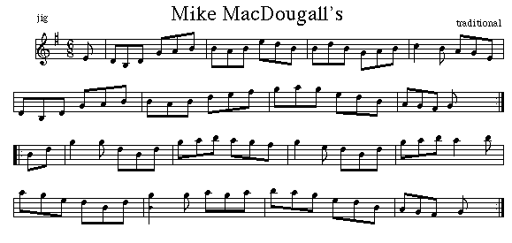 Wendy MacIsaac recorded this jig on her latest CD, Timeline. A popular tune during the late '70s it is often associated with Mike MacDougall. He may have composed it.![]()