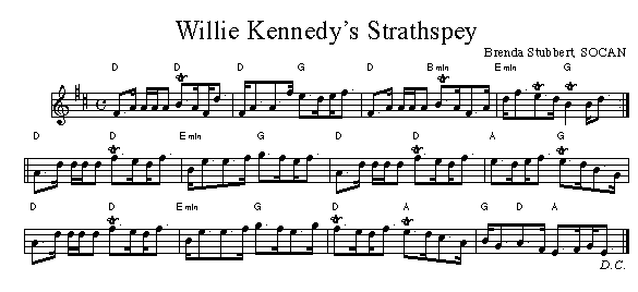 Brenda Stubbert (House Sessions) Brenda composed this tune in the early '90s for Mabou fiddler Willie Kennedy. Notation above was first published in Brenda Stubbert's Collection of Fiddle Tunes. Other Examples of Music Notation