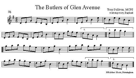 Natalie MacMaster recorded this jig on her new CD, Blueprint. Popular in the Irish tradition, the composer is Tony Sullivan an English banjo player from Manchester. Tony recorded it on his 1980 album titled Sully's Fancy. It is found in his book, Sully's Irish Music (Halshaw Music). This tune has also been published in The Silver Apple News. |