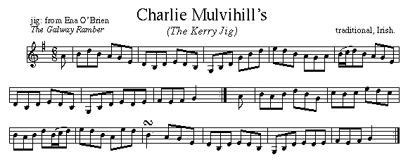 Toronto based Irish accordion player Ena O'Brien picked this up this jig from a recording of Charlie Mulvihiull. Charlie recorded the tune on Atlanic Wave a 1971 LP recording he made with NY fiddler Paddy Reynolds. On that recording it is played in the key of A major. To further confuse the issue it is sometimes played in the key of D.