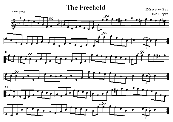 This music is a transcription of Sean Ryan playing a hornpipe which he composed. In his first book (The Hiddlen Ireland) it was given with 2 turns. Perhaps he composed the third turn at a later date.