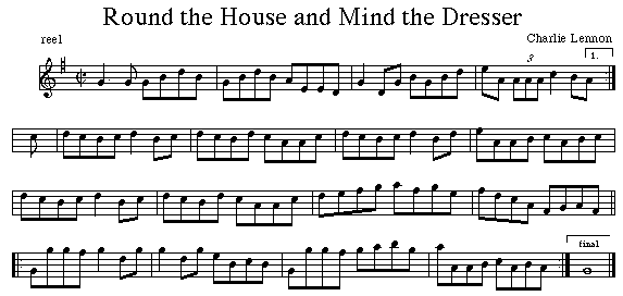 Round the House and Mind the Dresser is a Charlie Lennon tune which he published in his 1993 book Musical Memories. In that book Charlie arranged it using a dotted rhythm. You can find out more about Charlie on his website (www.charlielennon.com)