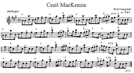 Vol. 4, MacKinnon's BrookRod Campbell was a Scottish competition piper who was active in the 1920s and '30s. The sound clip comes the performance by John L. MacDonald and Doug MacPhee on the Rounder anthology CD titled MacKinnon's Brook. It has also been recorded by Howie MacDonald.