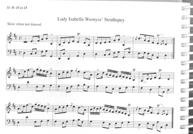 One of Marshall's classic slow airs, this one is played with expression. When I hear it I think of Alex Francis MacKay. The scan above is from the modern spriral well clearly typset edition of William Marshall's Music. It is also found in The Skye Collection. It can also be heard on teh Cape Breton Island DVD