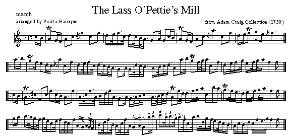 The above setting of The Lass of Pettie's Mill can be heard in a real audio sample by fiddler David Greenberg as well as information about the beautiful CD Bach Meets Cape Breton, the first recording by Puirt a Baroque. Although popular in the 18th century, published as both an instrumental and as a song, this 'new' version of The Lass rings true to Cape Breton traditions.