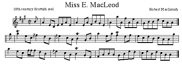 Double fiddles ... Brenda Stubbert and Stephanie WillsOver the centuries Robert MacIntosh has remained one of the most important figures in Scottish music. He published four influential books in the late 18th / early 19th centuries. Miss E. MacLeod was popularized by an LP recording of Winston Fitzgerald. It is found in Jerry Holland's Collection and was most recently recorded by Brenda Stubbert