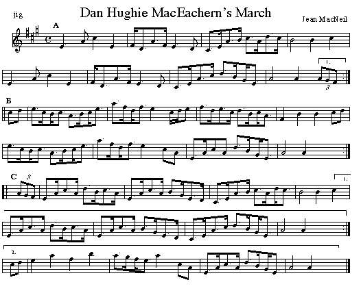 Recorded on Lisa MacArthur's Debut CD. First published in Fiddler's Corner it became popular and is found in The Cape Breton Fiddler's Collection Dan Hughie was an influential Cape Breton composer. Other Examples of Music Notation