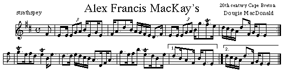 This is a new tune which has yet to be recorded or published in printed form. Dougie grew up a couple miles down the road from Alex Francis MacKay.