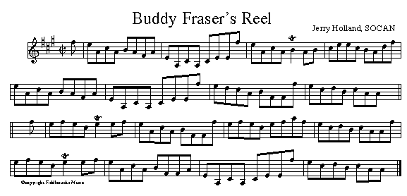 Jerry Holland - fiddle / Hilda Chiasson-Cormier &endash; Piano / Dave MacIsaac - Guitar Sound Clip comes from Jerry Holland and Friends where it was played as part of the following medley: Notation above first published in Jerry Holland, The Second Collection |