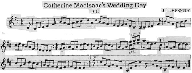 First published in Gordon MacQuarries Cape Breton Collection this lovely jig was composed in early 20th century Inverness County. Above is a scan from the original source. It has been recorded many, many times - once by Ashley MacIsaac. |