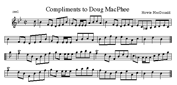 On the CD titled The Judique Flyer, Buddy MacMaster chose Howie MacDonald to accompany him on a B flat set of tunes which contains the above reel. Howie also recorded his composition on his CD The Ceilidh Trail.