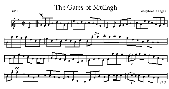 The Gates of Mullagh has been recorded by Irish harpist Laoise Kelly (MIDI). It is found in Josephine Keegan's book, The Keegan Tunes.