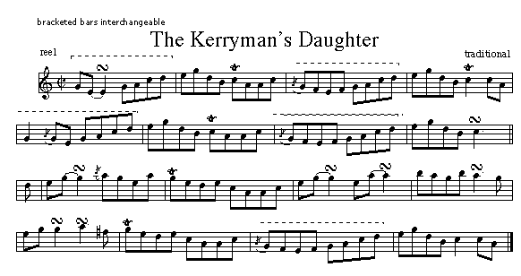 Firstecorded by Michael Coleman this old reel was a favourite of Tommy Basker. The above setting reflects their influences. James Morrison recorded his setting as Fisherman's Lilt - a title repopularized in the '70s by The Bothy Band.