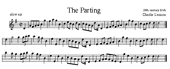 This slow air is reminicent of the style heard in some of O'Carolan's tunes. Composer Charlie Lennon recorded this tune on a CD titled Musical Memories. In the companion book he arranged it complete with both chords symbols and right and left hand piano parts.