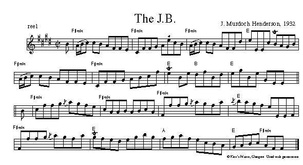 Notation for this tune was first published in Henderson's 1935 book, The Flowers of Scottish Melody. The setting above comes from The Cape Breton Scottish Collection a book scheduled for release in 2013. The sound clip from The Celtic Colours Sessions has the Barra MacNeilss playing with Tim Edey.