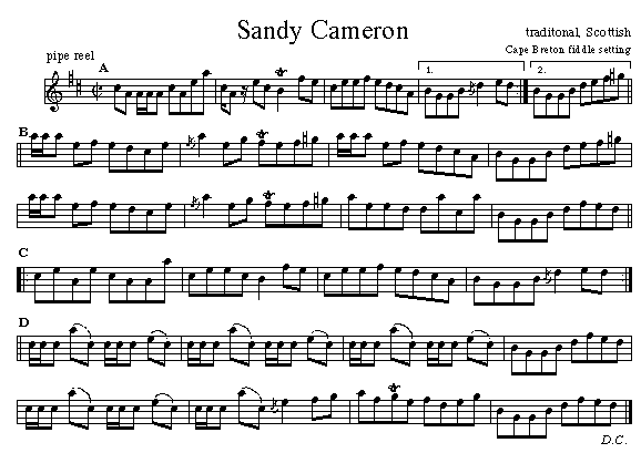 First recorded in Cape Breton on a 78 disc by Bill Lamey and Joe MacLean. The setting above is loosely based on Brenda Stubbert's CD Different Strokes