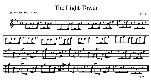A pipe tune composed by Paul Cranford on the fiddle. The above version can be considered a correction as it more closely resembles the MP3 excerpted from The Lighthouse CD than the notation in The Lighthouse Collection.Other Examples of Music Notation