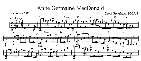 Fiddler David Greenberg can be heard on the recordings of Puirt a Baroque and on his recent Tunes Until Dawn CD.Jerry Holland recorded this tune on his CD Fiddler's Choice. The standard notation is found in Jerry's new book, The Second Collection