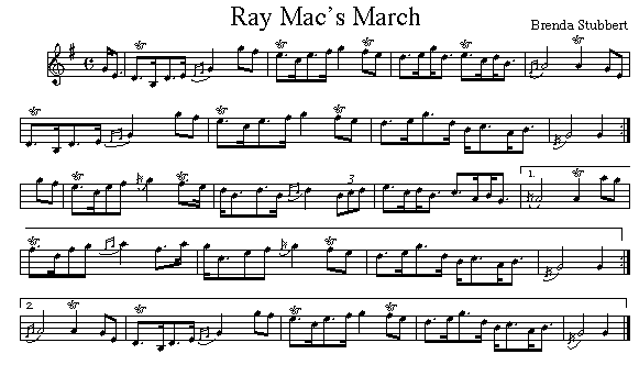 Ray MacDonald hosted the night Ceildh radio show from CJFX, Antigonish for many years. A great promoter of Cape Breton fiddling, since his retirement his choice of music been greatly missed. His tune can be heard on Tamerac 'er Down. The notation above comes from, Brenda Stubbert's Collection of Fiddle Tunes.