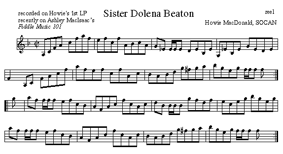 Howie MacDonald composed this reel in the middle 80s. It was on his first LP. On Fiddle Music 101 Ashley MacIsaac plays it following Trips with David, a strathspey by Jerry Holland. second tune in the medley
