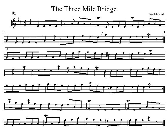 i. O'Farrell c. 1804. (title apparently refers to a bridge in Tipperary). ii. Sean Maguire, Tunes by the 100, 1975 as The Three Mile Bridge