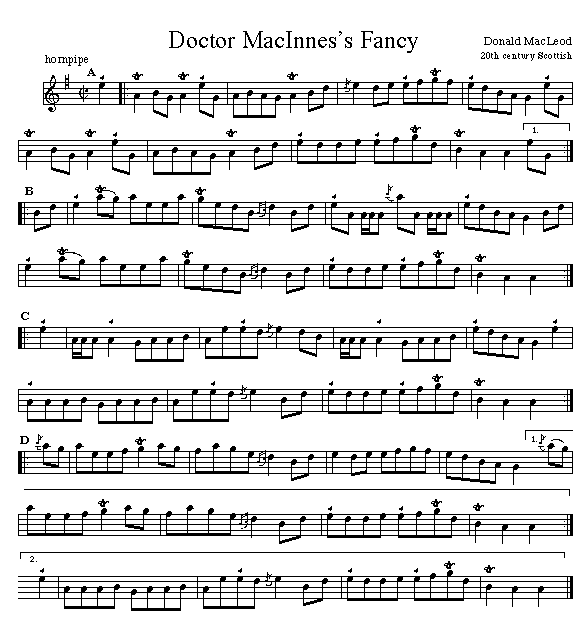 Notation with pipe gracings first published by the composer in Donald Macleods Collection Vol. 3. Recorded in Cape Breton by Kenneth and Angus MacKenzie