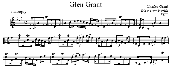Due to an early 78 disc by Bill Lamey this Scottish strathspey is popular in Cape Breton. In the 1990s it was recorded by Natalie MacMaster on her CD, My Roots are Showing and by Ashley MacIsaac on Close to the Floor.Charles Grant was a school teacher and amateur fiddler. His collection was published c.1820. He inherited William Marshall's fiddle.