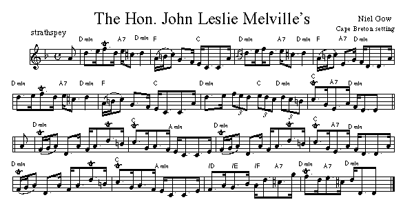 Notation from The Cape Breton Scottish Collection where setting is based on Ian MacDougall's recordng. References - i. Gow Vol. 5, 1808. ii. Athole Collection, 1884. Other Examples of Music Notation