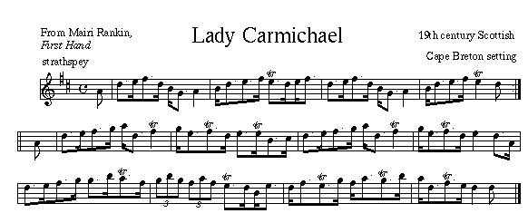 This strathspey was publlished in the Athole Collection in C major. The local D major setting above has much nicer endings. On Mairi Rankin's CD First Hand she plays it as a duet with one of her Mabou neighbours, Kenneth Joseph MacDonald