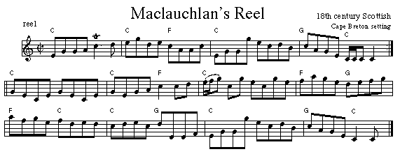 Originally published as a strathspey, the Cape Breton reel setting came from Dave Macisaac who learned it froma recording of the late Dan J. Campbell of Glenora Falls. Notation above from The Cape Breton Scottish Collection.