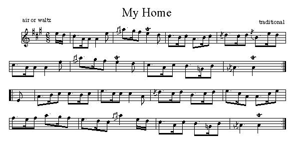 This music is a transcription, based on the linked MP3 from Lloyd MacDonald's CD. A popular air it has been used as a Gaelic air, a pipe lament or retreat, a waltz and even as a jig. The Gaelic title is Mo Dachaidh |
