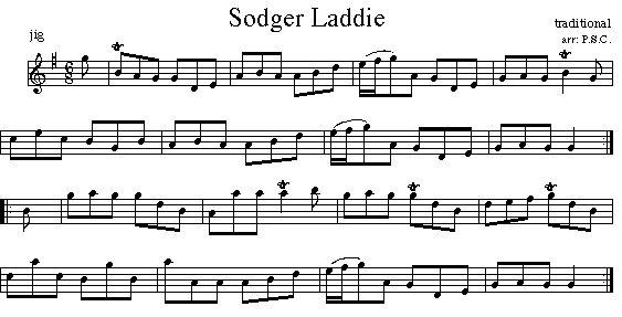 I first heard this jig played by Donald MacLellan. In the 1960s it was popularized by a Dan Joe MacInnis recording and more recently it has been associated with David Greenberg i. Bremner, 1757 ii. Neil Stewart, 1761 as Sailor Laddie. iii. Lowes, c. 1845 iv. Dan Joe MacInnis, LP. c.1963.. v. David Greenberg, Bach Meets Cape Breton, CD, 1995 Addenda - Tunes like this, one that had been inadvertantly left out of the printed/published edition of The Cape Breton Scottish Collection, will be added to future digital editions of that book.